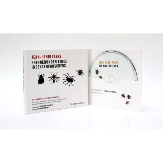 „Ein Glücksfall unter den vielen Hörbuchproduktionen. In Gert Heidenreich wurde ein so warmherziger wie wohltuend unaufgeregter Sprecher gefunden. An seiner Seite werden die Ausflüge ins Reich der Insekten zu vergnüglichen Expeditionen“ (SZ):Warmherzig und voller Lebensklugheit widmete sich Jean-Henri Fabre ein Leben lang der Beobachtung und Beschreibung der Insekten in ihrem Lebensraum. Dabei entstanden seine »Erinnerungen«, ein literarisches Meisterwerk, eine gleichermaßen poetische wie genaue Naturbetrachtung und eine Liebeserklärung an die Insektenwelt. Die literarischen Gattungsbiographien zählen zu den schönsten und einfühlsamsten aber auch genauesten Tierbeobachtungen, die je geschrieben wurden. Vier „Biografien“ liegen hier als elektroakustische Hörbücher vor: Der heilige Pillendreher, Die schwarzbäuchige Tarantel, Die gelbflügelige Grabwespe, Die Mauerbienen. Mit einem Sound von Robert Rehnig. 4 Audio-CDs gelesen von Gert Heidenreich. 251 Min. Nur bei uns. Zweitausendeins.